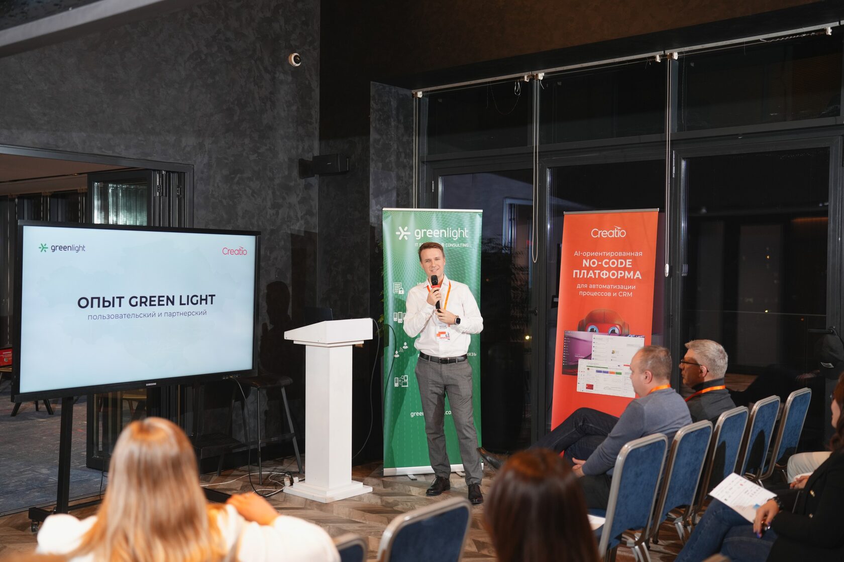 Технический директор Green Light ITS, Евгений Багрецов, поделился внутренним опытом внедрения Creatio, подчеркнув, что мы рекомендуем партнёрам только те решения, которые сами успешно используем в работе.